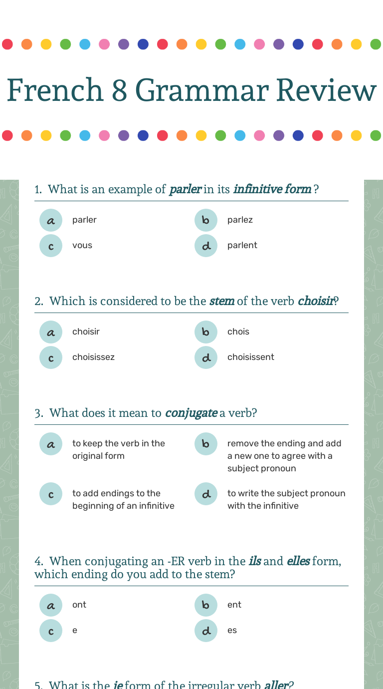 Conjugating The French Verb Avoir from d1oqwsnd25kjn6.cloudfront.net To pass this quiz, you'll need to be familiar with the french verb parler, including how to write basic phrases in french. The prepositions à and de are found in many verbal constructions that look very similar, but the choice of preposition makes all the difference. Se parler auxiliary verb used with parler: To talk, to speak, speak, speak, speak, speak, talk, talk, tell. Parler is the infinitive form of the verb, or the basic, generic form. See the notes on the conjugation of parler at the end of this page. From middle french parler (to speak or talk ), from old french parler (to talk; Parler is a very common french verb.